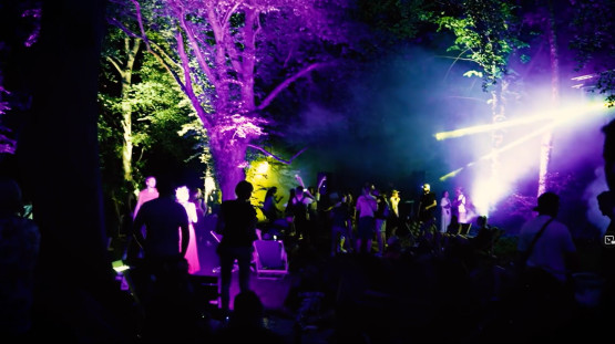 Świetlna samba, interaktywna instalacja Kina Svoboda, aleja kolorowych lampionów, iluminacja artystyczna przedstawiająca leśną pos...
