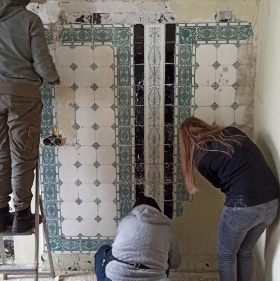 Prawdziwy skarb schowany był pod tynkiem i linoleum. Odkryli płytki z przedwojennego sklepu mięsnego [foto]