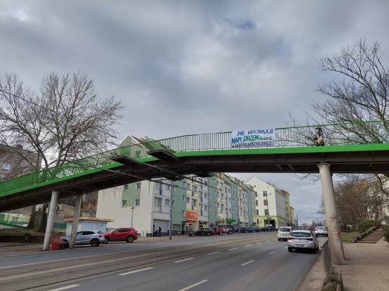 Banery z hasłem „Nie wycinajcie nam drzew” zawisły w centrum miasta