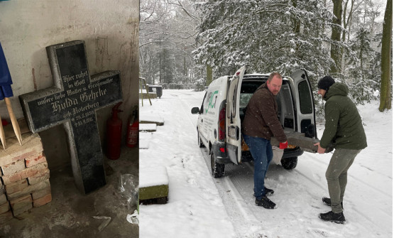 Podczas porządków w garażu odnaleźli ponad 100-letni bazaltowy krzyż. Powróci on na Cmentarz Centralny