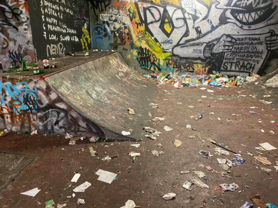 Skatepark w przejściu podziemnym zdewastowany. „Przestrzeń stała się żulowiskiem i niebezpieczną przystanią wandali” [foto]