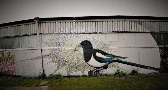 Sroka na Torze Kolarskim. Nietypowe połączenie muralu i mozaiki