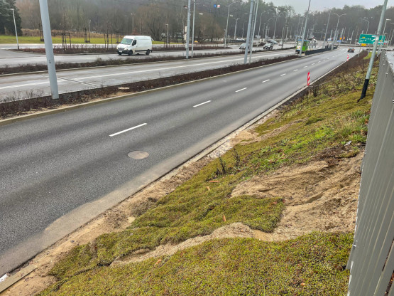 Przy ulicy Szafera po raz kolejny doszło do osunięcia się mat rozchodnikowych ze skarpy. „Sprawdzamy, gdzie pojawia się woda. Miej...