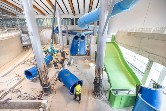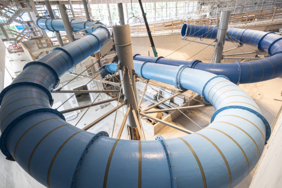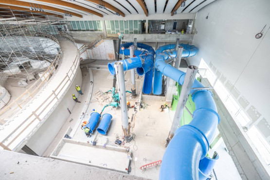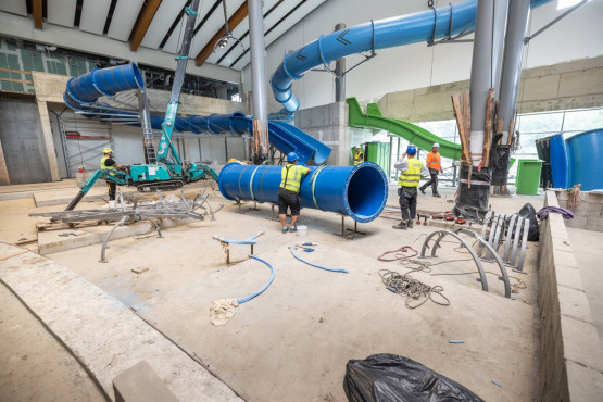 Prace skupiają się teraz na wyposażeniu wnętrz. Prowadzony jest m.in. montaż kręgielni, ścianki wspinaczkowej oraz zjeżdżalni wewnętrznych.