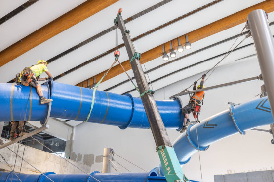 – Jednocześnie toczą się prace instalacyjne i wykończeniowe. To montaż wind, sufitów napinanych, ogrzewania podłogowego, nawiewników podłogowych, grzejników, sterowników zasilaczy, opraw oświetleniowych. Kontynuowane są prace malarskie i prace przy wykonywaniu poszycia małych kul na modelu cząsteczki wody – informuje Piotr Zieliński, rzecznik prasowy miejskiej spółki Fabryka Wody.