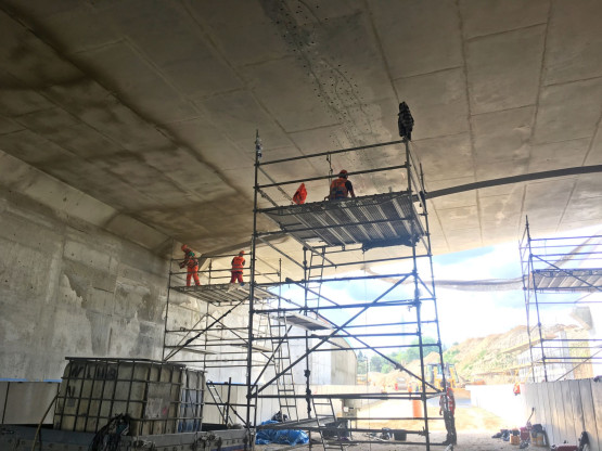 Zmiany w organizacji ruchu umożliwią rozpoczęcie rozbiórki starego wiaduktu. Jednocześnie na węźle trwają prace przy nowych wiaduktach. Wykonywana jest warstwa antykorozyjna ustroju nośnego, izolacja murów, jak również zbrojenie kolejnych ścian. W ramach budowy nowego torowiska kolejowego, wykonywany został drenaż kolejowy, prowadzono również prace związane z korytowaniem pod tor kolejowy.