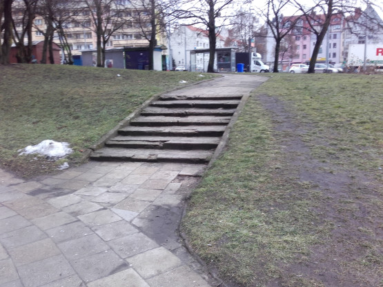 Te schody to najkrótsza droga od strony przystanków na ul. Wyszyńskiego, w kierunku kościoła św. Jana Ewangelisty i Trafostacji Sztuki. Od dawna są już jednak mocno zniszczone i sprawiają sporo problemów osobom z trudnościami w poruszaniu się.