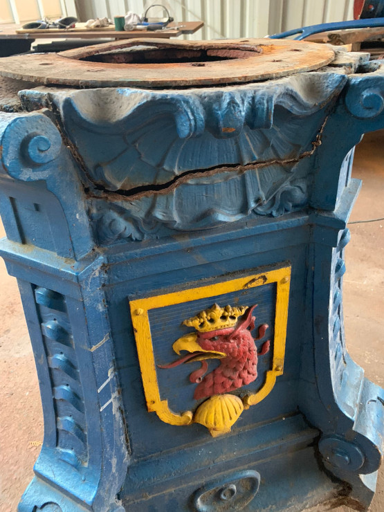 Mechanicy pospawali pokiereszowany żeliwny kadłub pompy, wyszlifowali i pomalowali na niebiesko. Dodatkowo odnowili i dorobili elementy wewnętrznego mechanizmu pompowego oraz zamocowali odlewy ozdobnych liści akantu, zdobiące kolumnę od zewnątrz.