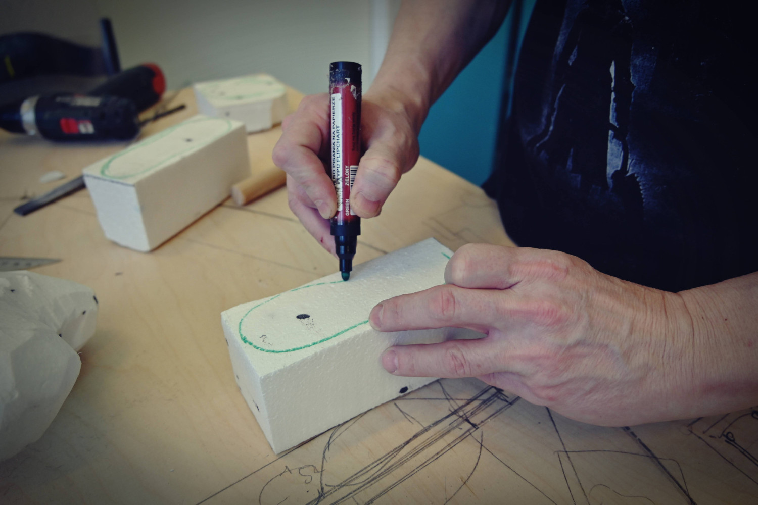 – Często to jest metoda prób i błędów – przyznaje Kinga Dalska, kierowniczka pracowni. – Nie zawsze mamy podane na tacy rozwiązania i sami musimy je znajdować. Częstokroć musimy coś przetestować, przeprowadzić w pewnym sensie eksperyment. Kupujemy materiały, konsultujemy się ze scenografem, kontaktujemy się z aktorami. Mamy próby z formami – jak wychodzi od razu, to świetnie, jak nie, próbujemy innych rozwiązań – opisuje Dalska. – Przy spektaklu świątecznym mieliśmy nie lada wyzwanie, aby zbudować ścianę z butelek PET, które nie są łatwe w obróbce. Stworzenie lalki z odzysku również wymagało sporej inwencji twórczej.