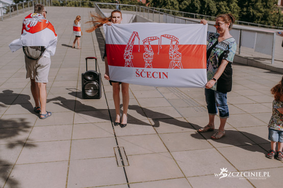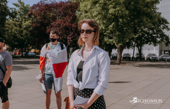Na plac Solidarności w niedziele przychodzą Białorusini i Białorusinki, mieszkający w Szczecinie. Niewielka grupka. Mają białoruskie flagi i mocne hasła za natychmiastową dymisją dyktatora Aleksandra Łukaszenki. Z głośnika puszczają patriotyczne kawałki. Pod Aniołem Wolności ktoś czyta nazwiska osób zamordowanych przez reżim: Tarajkowski, Bandarenko…, jest co najmniej 10 ofiar śmiertelnych. Na minutę milczenia zapada cisza.