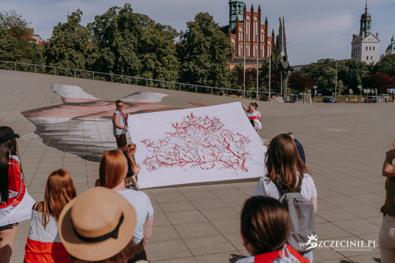 Na placu Solidarności szczeciński streetartowiec Kraz namalował w biało - czerwonych barwach gest Victorii. Okazją była rocznica Sierpnia 80’ ale znak tak operuje kombinacją bieli i czerwieni, że nawiązuje również do flagi Białorusinów walczących o demokrację.