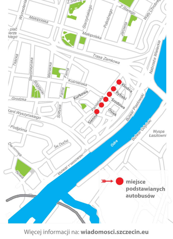 Ewakuacja rozpocznie się w niedzielę, 23 sierpnia, o godzinie 5:00. Swoje mieszkania będą musiały opuścić osoby przebywające pod adresami: Kłodna 25; Panieńska 10, 10A, 10B, 11, 12, 13, 14, 15 (Hotel Zamkowy), 16, 17, 18, 19, 20; Środowa 8, 8/1, 9, 10; Kurza Stopka 6, 13; Mała Odrzańska 19, 21; Wielka Odrzańska 26, 27, 28, 29, 30, 31; Osiek 7.