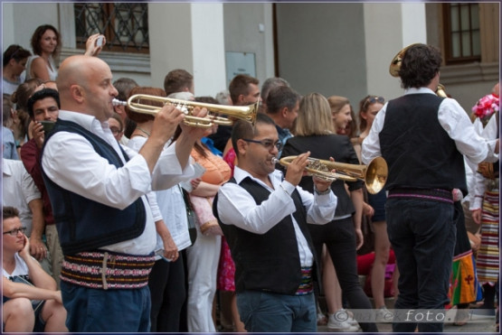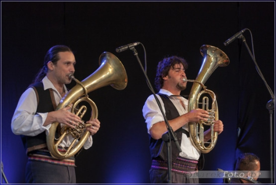 Artysta koncertuje od wielu lat ze swoją weselno-pogrzebową orkiestrą. Ta grupa w niektórych miastach występuje w pełnym składzie - 37 muzyków (!), a w innych Goran gra z mniejszym personelem. Tak było wczoraj w Szczecinie, ale absolutnie nie oznacza to, że było ciszej i spokojniej z tego powodu. Dwóch trębaczy, dwóch puzonistów, saksofonista i sam Goran grający na gitarze, to wystarczyło by rytmiczny przekaz zawarty w ludowych, bałkańskich utworach oraz kompozycjach znanych z filmów Emira Kusturicy, został jeszcze wzmocniony. Goran w białym stroju z gitarą w ręku oczywiście także śpiewał, ale nie sam. Obok niego usiadł niewysoki, ale dysponujący dobrym głosem, Muharem Redžepi, a na scenie były jeszcze Bułgarki w barwnych ludowych strojach, tworzące dwuosobowy chór.