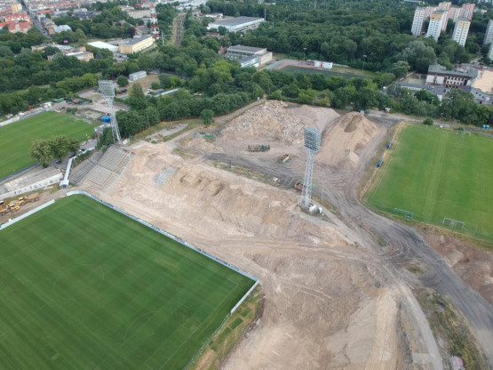 Pierwszy mecz ligowy na przebudowywanym stadionie przy ul. Twardowskiego odbędzie się 29 lipca. Pogoń podejmie Arkę Gdynia.