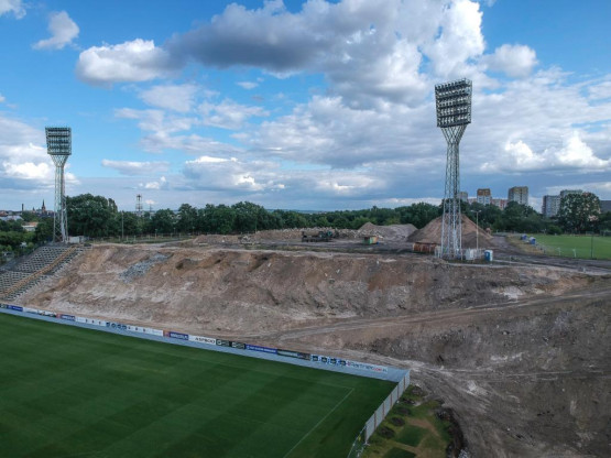 Rozebrane zostały już trybuny południowa („wysoka”) i zachodnia („na łuku”). Wkrótce rozpocznie się też wyburzanie sektora 15., sąsiadującego z placem budowy. Początkowo planowano zostawić te miejsca dla kibiców jeszcze na najbliższy sezon, ale ostatecznie zdecydowano się zmienić harmonogram prac. Ma to przyspieszyć o kilka tygodni oddanie do użytku dwóch pierwszych nowych trybun. Wcześniej zapowiadano, że nastąpi to w III kwartale 2020 r.