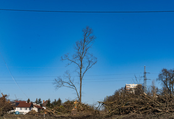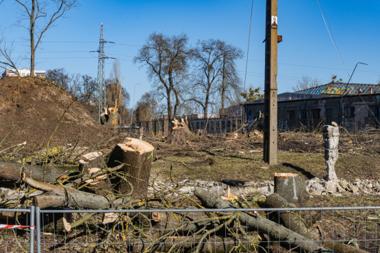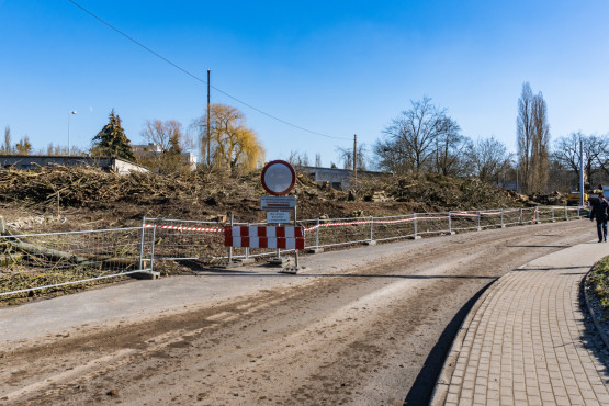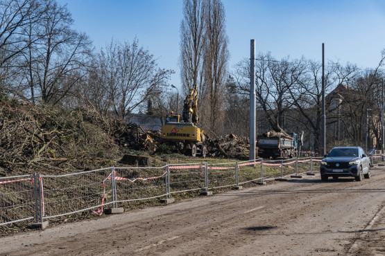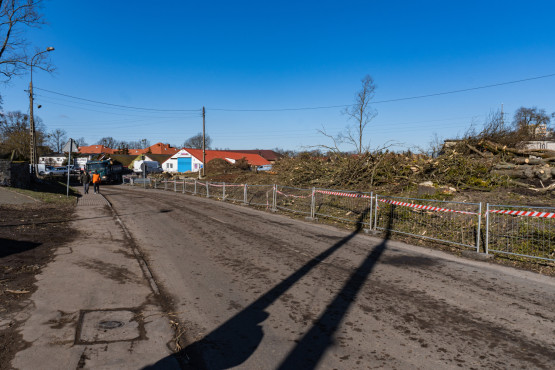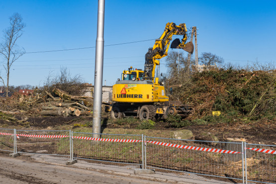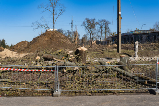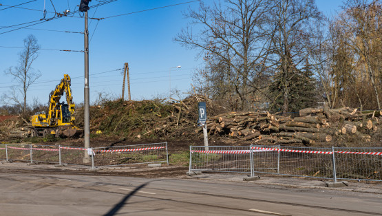 Na razie prace związane są przede wszystkim z usuwaniem drzew, które kolidowały z przebiegiem nowej drogi. Skalę wycinki można ocenić po składowisku przy pętli, gdzie leżą pocięte pnie i gałęzie.