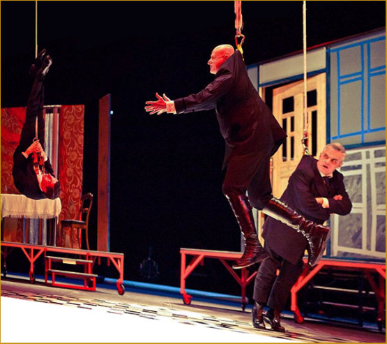 No i Arek Buszko z lampą-abażurem na głowie. Dodatkowo lampą zapalaną i gaszoną w zależności od stopnia dyskrecji prowadzonej z panną młodą rozmowy. Sytuacji podobnych jest tu zresztą znacznie więcej: Buszko-lokomotywa, Buszko-skrzypek wygrywający na ciele sługi inwektywy skierowane w stronę wahającego się wciąż Podkolesina.