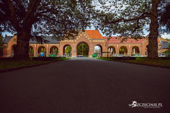Trójskrzydłowa Brama Główna Cmentarza Centralnego powstała w latach 1901-04. Zaprojektował ją Wilhelm Meyer, który był autorem całej koncepcji przestrzennej szczecińskiej nekropolii. Brama uległa zniszczeniu w czasie drugiej wojny światowej. Odbudowano ją w kilku etapach, w pierwszej połowie lat 60. XX wieku, ale nie w całości. Nigdy nie odtworzono charakterystycznej kopuły wieńczącej skrzydło południowe. Ostatnią gruntowną renowację brama przeszła w latach 2008-09.
