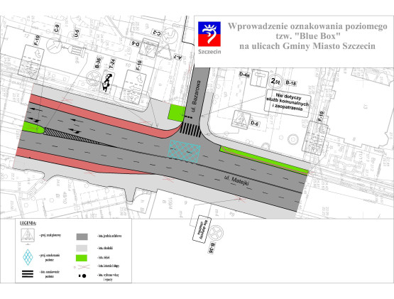 „Pamiętacie yellow boxy? Nie tak dawno testowaliśmy takie rozwiązanie w wybranych punktach miasta. Zakratkowane pola przypominają kierowcom by na nich nie stawać, gdy nie można opuścić skrzyżowania. Odbiór był pozytywny więc takie oznakowanie wprowadzamy na stałe. Z tym, że w kolorze niebieskim” – napisał Piotr Krzystek, prezydent Szczecina, na swoim profilu na Facebooku.