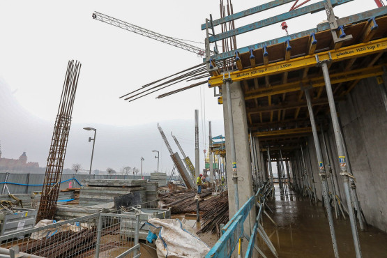 W piątek postępy na placu budowy oglądał marszałek Olgierd Geblewicz, bo ta inwestycja realizowana jest właśnie przez samorząd województwa. Mógł zobaczyć pierwsze słupy konstrukcji parteru, a także liczne zbrojenia i szalunki.