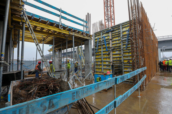 – Oprócz prac konstrukcyjnych, pracujemy również nad instalacjami, m.in. sanitarną, elektryczną. W płytach poukrywane są rurociągi kanalizacji, przepusty – dodał Tomasz Zagiczek, inżynier kontraktu z firmy PM Services Poland.