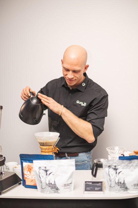 Michał: Myślę, że zdecydowanie Barista Basic, czyli poziom podstawowy, cieszy się największym zainteresowaniem. To szkolenie gwarantuje nabycie umiejętności, pozwalających rozpoczęcie pracy za barem nawet w kawiarniach specialty. Przydatne jest też dla właścicieli kawiarni już istniejących, którzy chcą oceniać i kontrolować jakość kawy w lokalu oraz dla tych, którzy lokal dopiero mają w planach. Ludzie chętnie też sięgają po alternatywne metody parzenia. Parzenie kawy w dripie, aeropressie czy frenchpressie jest znacznie bardziej ekonomiczne i prostsze niż w ekspresie ciśnieniowym. Najnowszą propozycją Qualii z zakresu szkoleń są Podstawy Sensoryki, czyli rozbieranie smaku kawy na warstwy takie jak: body, mouthfeel, aftertaste, flavour i inne. Przy okazji, voucher na szkolenie kawowe to świetny pomysł na przykład na świąteczny prezent dla kawosza. Serdecznie zapraszam do sali szkoleniowej w naszej palarni kawy przy Struga 15 w Szczecinie. Z kolei pełną ofertę szkoleniową można znaleźć w sklepie online Qualiashop.pl.