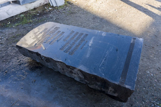 Okazało się, że wcześniej już je rozpoczął, ale na szczęście piła zagłębiła się tylko kilka centymetrów w tylną stronę nagrobka.