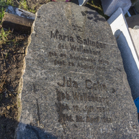 Odnalezione macewy są imponujących rozmiarów. Większa ma prawie dwa metry wysokości i waży ok. 700 kg. Znajdowała się na grobie Josepha Brasch (1840-1913). Nieco mniejsza płyta ma ponad 160 cm i waży ok. 450 kg. Była częścią grobu Marii Salinger z d. Wollenberg (1844-1916) i Idy Cohn z d. Wollenberg (1854-1929). Wykonane zostały czarnego i czarno-zielonego granitu norweskiego.