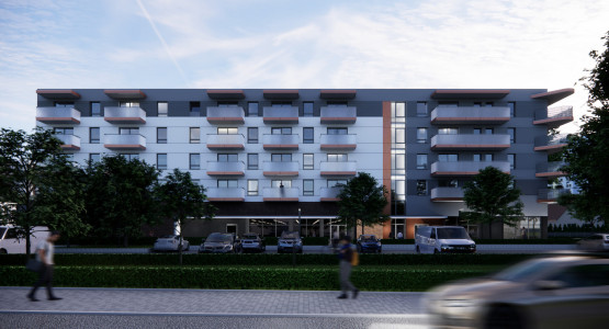 – Elewacje budynku będą zróżnicowane pod względem materiałów i kolorystyki – dominować będą nowoczesne wykończenia: płyty gresowe, klinkier, tynk strukturalny w odcieniach bieli i antracytu oraz akcenty w kolorze miedzi. Parter zostanie wykończony m.in. płytkami klinkierowymi i ciemnoantracytowymi płytami gresowymi, a wyższe kondygnacje – tynkiem mineralnym z boniowaniem oraz panelami imitującymi drewno – opisuje SM „Dąb”.