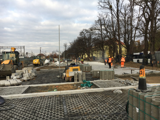– Na placu budowy wykonywane zostały regulacje włazów studni i wpustów deszczowych, zakończono prace związane z wykonaniem makroniwelacji w obrębie zatoki autobusowej i warstwy podbudowy z kruszywa łamanego w obrębie parkingu. Gotowe są już krawężniki i wyspa dzieląca na ul. Metalowej. Wykonawca kontynuuje prace związane z układaniem krawężników i obrzeży oraz podbudów na parkingu P&R oraz na zatoce autobusowej. Trwa układanie nawierzchni w miejscach postojowych oraz nawierzchni jezdni na parkingu i ciągach pieszych. Zakończono montaż stolarki okiennej i drzwi, rozpoczęto prace wykończeniowe w punkcie kasowym – wylicza Hanna Pieczyńska.