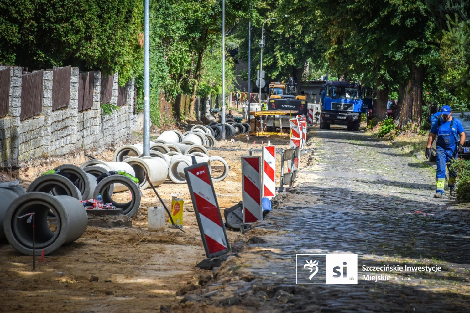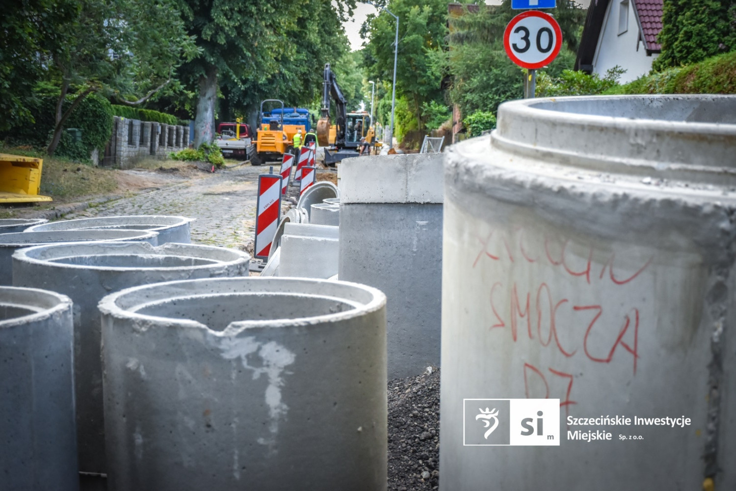 Obecnie prace są prowadzone na kilku odcinkach ulicy Smoczej. Widać coraz więcej wykopów pod nowe ciągi kanalizacyjne i techniczne. Wąskie rowy otwierają dostęp do starych instalacji, które zostaną wymienione lub zabezpieczone przed kolejnymi etapami.