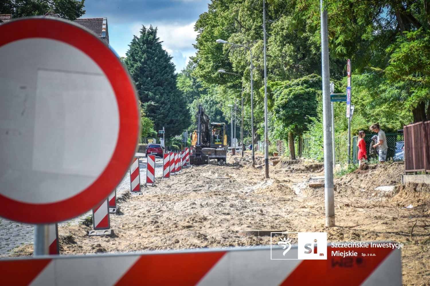 Równolegle prowadzone są roboty ziemne. Ekipa Firmy Budowlano-Drogowej MTM usuwa wierzchnią warstwę gruntu, aby przygotować podłoże pod nową konstrukcję. Drogowcy wkroczyli również z pracami na fragment ulicy Krzemiennej, gdzie trwa rozbiórka nawierzchni.