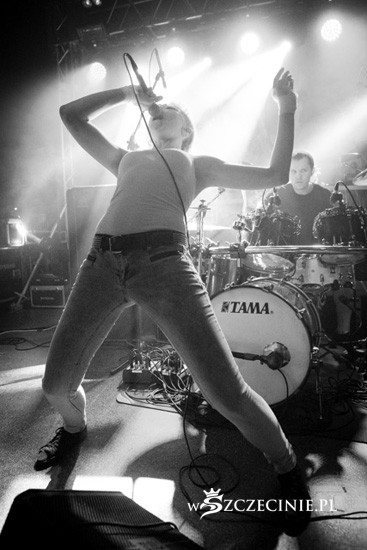 Obscure Sphinx też wydali w tym roku swój (drugi już) album. Dokładnie trzy dni temu była premiera handlowa wydawnictwa „Void Mother”. Po bokach sceny ustawiono roll-upy z groteskowym wizerunkiem lalki Acheronti z malunkiem ćmy na twarzy (czyli okładki tego albumu), a muzyka z niego wypełniła dużą część czasu, którym dysponował zespół. Wokalistka tej formacji – Wielebna - „nieco” zmieniła swój image od czasu poprzedniej wizyty w naszym mieście. Bandaże na rękach pozostały, ale teraz jest blondynką. Oczywiściue eksploatuje swoje gardło równie intesywnie, a dźwięki z nowej płyty (choćby singlowy „Lunar Caustic”) to post-metalowe piekło ! Publika bardziej zaangażowała się w odbiór tego występu, bo niewątpliwie warto było poświęcić tej warszawiskiej formacji swą uwagę. Co prawda słychać w tym, co robią pokrewieństwo z Meshuggah, ale mimo to na żywo prezentują się bardzo dobrze.