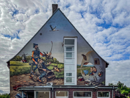 Z kamienicy przy ul. Stołczyńskiej 161 na mieszkańców Skolwina spogląda Don Kichot. Autorem muralu jest artysta plastyk Dariusz Miliński. Praca powstała na zlecenie Domu Kultury Klub Skolwin w ramach miejskiego programu „Poprawa estetyki przestrzeni miasta Szczecin”.