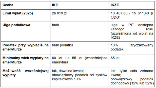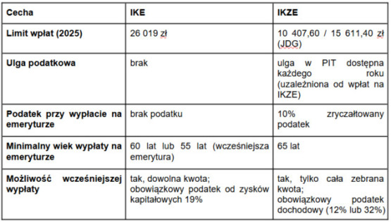 Porównanie IKE i IKZE – tabela