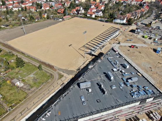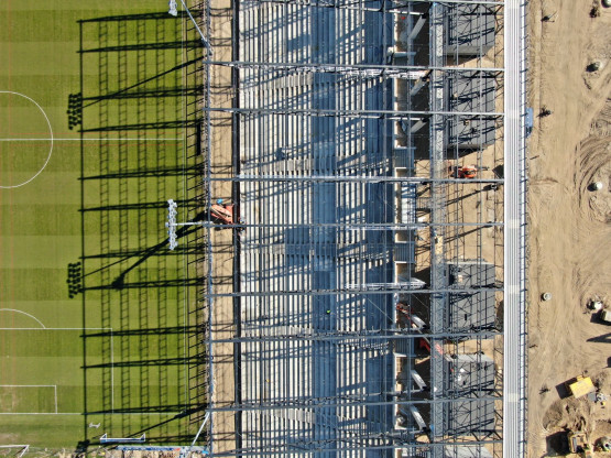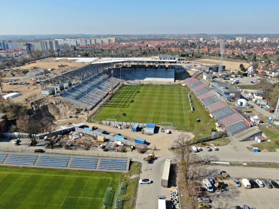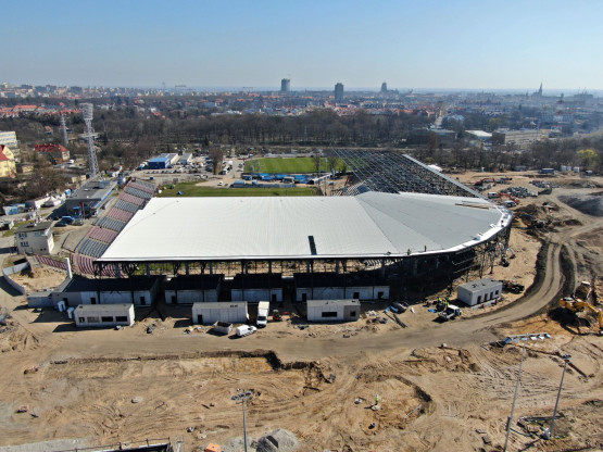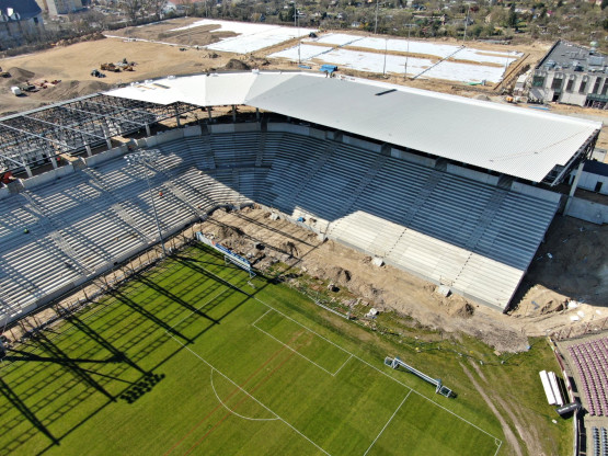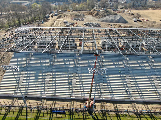 – Zakończono montaż ostatniego rzędu prefabrykatów na trybunach stadionu, na ukończeniu jest również montaż poszycia dachu nad trybuną zachodnią. Na nowych trybunach Wykonawca prowadzi aktualnie prace związane z montażem koryt pod instalacje elektryczne. W pawilonach na koronie stadionu trwa wykonywanie ścian działowych, pokrycia dachów, montowane są kable instalacji elektrycznej – relacjonuje Piotr Zieliński, rzecznik prasowy miasta ds. inwestycji.