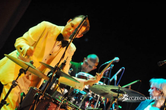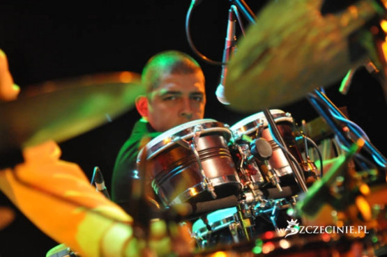 Na scenie znalazło się więc aż siedem osób, a po środku oczywiście wyeksponowano zestaw perkusyjny. W trakcie trwania koncertu przekonaliśmy się, że te błyszczące bębny pan Janek traktował dosyć brutalnie, choć początek występu był dość spokojny, wręcz nostalgiczny. Zespół rozpoczął go bowiem tak samo jak swą płytę (wydaną w październiku ubiegłego roku) od kompozycji „ Nie ma jak u mamy”. Obok lidera MPM tworzą jeszcze śpiewająca Gaba Kulka, Wojtek Traczyk - gitara basowa , José Manuel Albán Juárez (czyli po prostu Manolo, urodzony w Szczecinie) – perkusjonalia, Piotr Zabrodzki (klawisze), Kuba Galiński (klawisze), Marian Wróblewski (gitara). Można powiedzieć, że już w pierwszym utworze, pokazali jak wiele potrafią, bo oczywiście wykonali go bardziej żywiołowo niż w wersji studyjnej. Potem nastąpiła krótka przemowa Janka Młynarskiego, który wyraził nadzieję, że to co robi ze swoimi przyjaciółmi, nie zostanie przez szczecinian odebrane tylko i jedynie jako wspinanie się po plecach jego ojca, w celu sięgnięcia po finansowe profity. Nieprzypadkowo chyba zaraz po tych słowach zabrzmiał utwór „Róbmy swoje”.