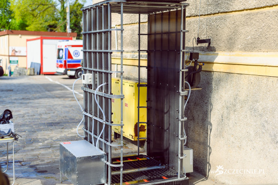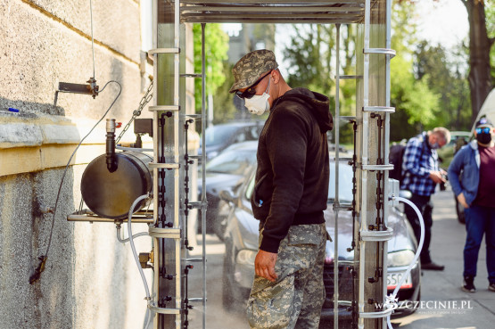 Śluza, która we wtorek została przekazana Wojewódzkiej Stacji Pogotowia Ratunkowego w Szczecinie, ma w ekspresowy sposób dezynfekować pracowników ochrony zdrowia. Zbudowali ją mechanicy z Dąbia. Prace nad budową śluzy zajęły im niecałe dwa tygodnie. To lekka konstrukacja, składa się z dwóch ścian i sufitu, w których zamontowane są dysze rozpylające płyn dezynfekujący.