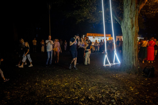Tuż przed godziną 22 eksplorujących świetlne instalacje zaskoczyła blisko godzinna burza. Nie zniechęciła ich jednak do dalszego zwiedzania, wręcz przeciwnie – na ulicach można było dostrzec niestrudzonych mieszkańców, którzy albo szli do parku Żeromskiego, albo w stronę pięciu instalacji.