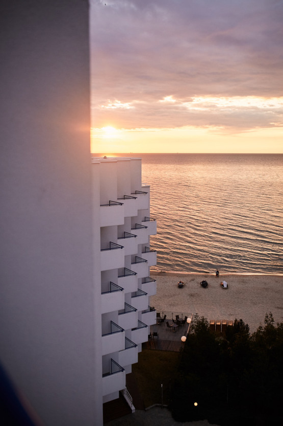 To jeden z najbardziej charakterystycznych budynków na polskim wybrzeżu. Goście budzą się tutaj w pokojach z widokiem na morze, a później zjeżdżają windą, niemal prosto na prywatną plażę z leżakami i parasolami. Wszystkim, co potrzeba jest do wypoczynku, również aktywnego.