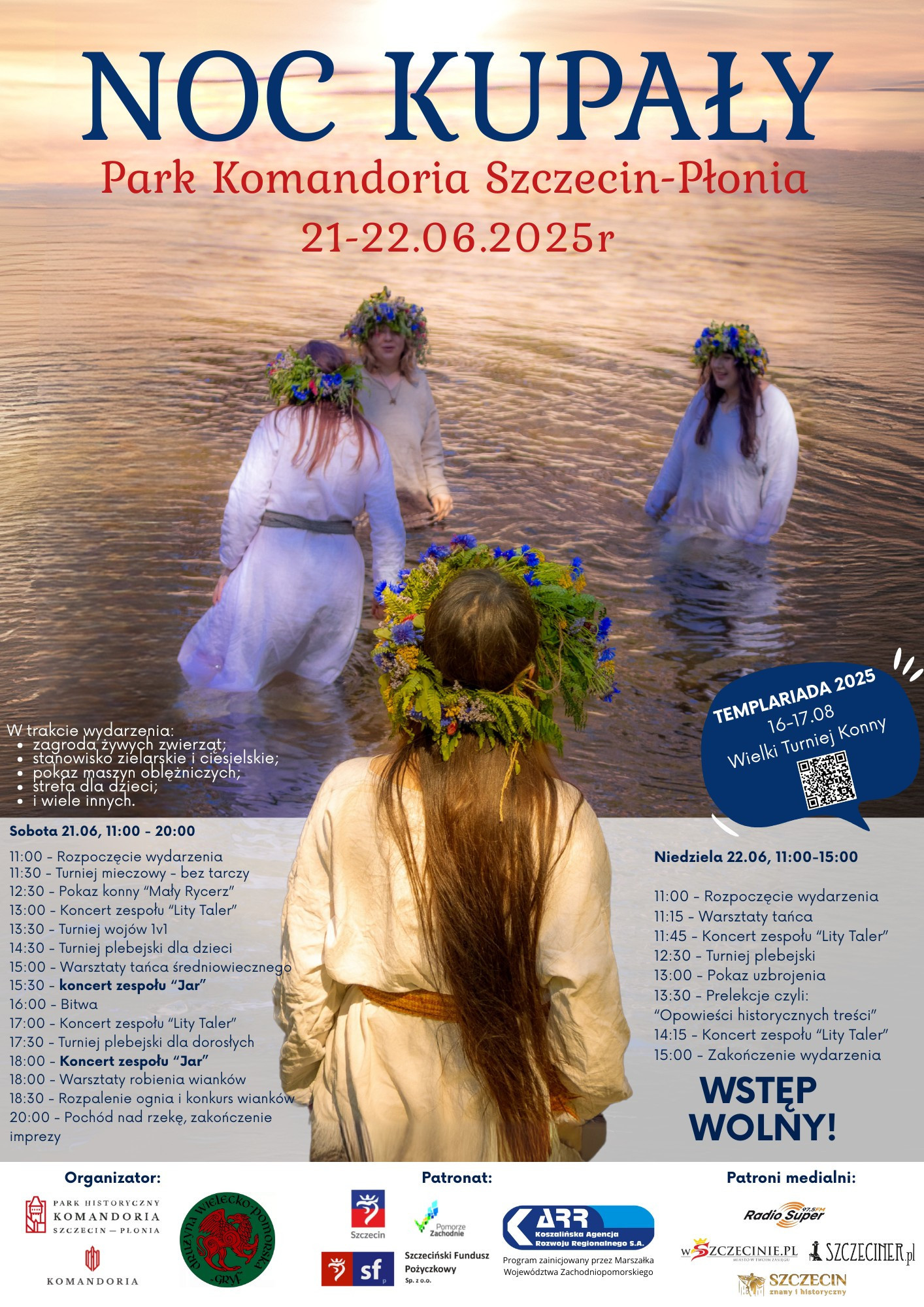 Noc Kupały w ten weekend organizuje również grupa rekonstrukcyjna Komandoria Chwarszczany. Wydarzenie odbędzie się w sobotę i niedzielę, 21 i 22 czerwca, na terenie projektowanego Parku Historycznego Komandoria przy ul. Komandorii 7 w Płoni. Program wydarzenia bogaty. Zaplanowano: obóz średniowieczny, szereg pokazów rzemiosł dawnych, czynności i obrzędów, zbieranie ziół i kwiatów, spławianie wianków na wodzie, dawne śpiewy, koncerty zespołu Jar, tor łuczniczy, turniej plebejski, mini zoo, stanowisko barwierskie, stanowisko z instrumentami średniowiecznymi, gry i zabawy dla dzieci. Początek w oba dni o godz. 11:00. W sobotę o 19:30 pochód nad rzekę i spławianie wianków. Udział bezpłatny. Szczegółowy program: https://www.facebook.com/events/1225801758899029