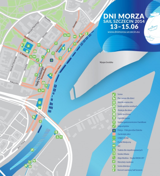 Wszyscy aktywni będą mogli skorzystać ze Strefy Sportu i spotkać się z piłkarzami Pogoni czy piłkarkami ręcznymi Pogoni Spa Baltica. Odbędą się w niej również zawody w piłkę nożną, pokazy akrobatyki, karate, judo i sumo. Z kolei na Łasztowni zostanie ulokowane miasteczko żeglarskie, w którym będą miały miejsce wyścigi mieszkańców na ergometrach, regaty wioślarskie, pokazy ratownictwa WOPR i Grand Prix Zachodniopomorskiego Szlaku Żeglarskiego. Chętni będą mogli również wziąć udział w rejsach kajakowych po Międzyodrzu, organizowanych dwa razy dziennie.
