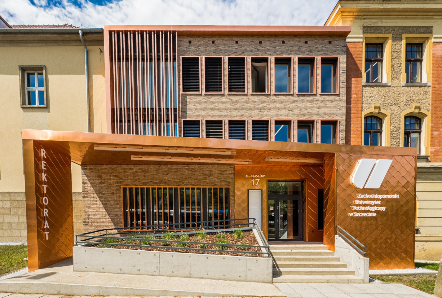 Wyremontowany właśnie łącznik prowadzi do dawnej willi dyrektora szkoły, czyli zabytkowej części rektoratu. Dwa lata wcześniej zakończył się tam remont wnętrz. Odtworzono zabytkowe detale i przywrócono historyczną kolorystykę. Efektownie wygląda zwłaszcza odnowiona klatka schodowa.