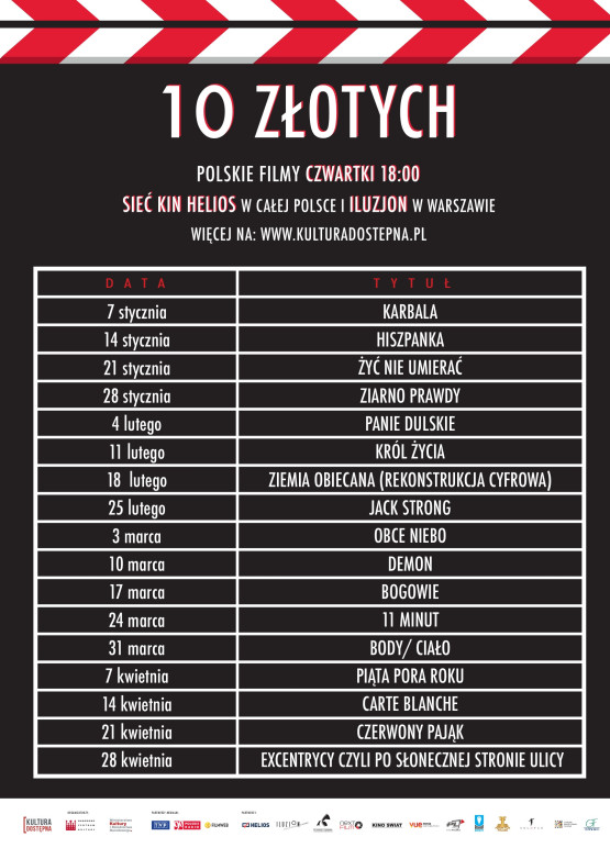 Startuje III edycja projektu „Kultura Dostępna”, w ramach którego bilety do kina na wybrane polskie filmy kosztują tylko 10 zł. Seanse odbywają się w każdy czwartek o godz. 18:00 w kinach sieci Helios.