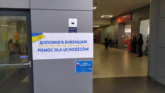 Pomoc dla uciekających przed wojną Ukraińców zorganizowano w starej części dworca, w pobliżu punktu pocztowego. Jest tam przede wszystkim punkt informacyjny, poczekalnia z jadłodajnią i kolorowy punkt opieki nad dziećmi.