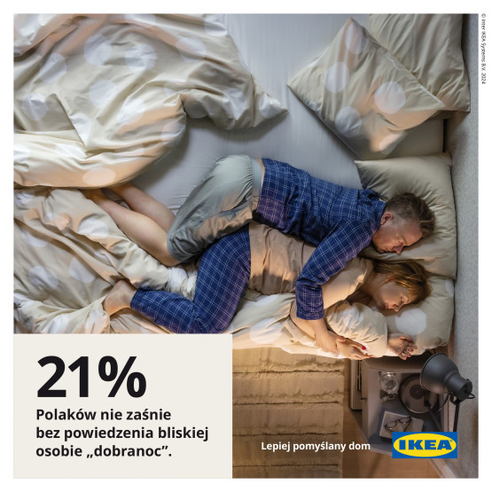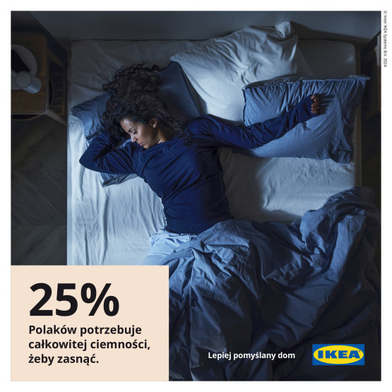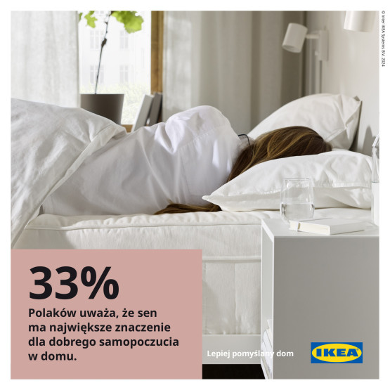 Niedobór snu to dziś powszechny problem społeczny. Ponad 40% Polek i Polaków nie jest zadowolonych z jakości swojego snu (1). Polacy wydają rocznie ponad 315 mln zł na leki nasenne (2). IKEA, zdając sobie sprawę z wagi tego problemu i jego wpływu na codzienne funkcjonowanie każdego z nas, inspiruje do zmian, które mogą poprawiać jakość snu.
