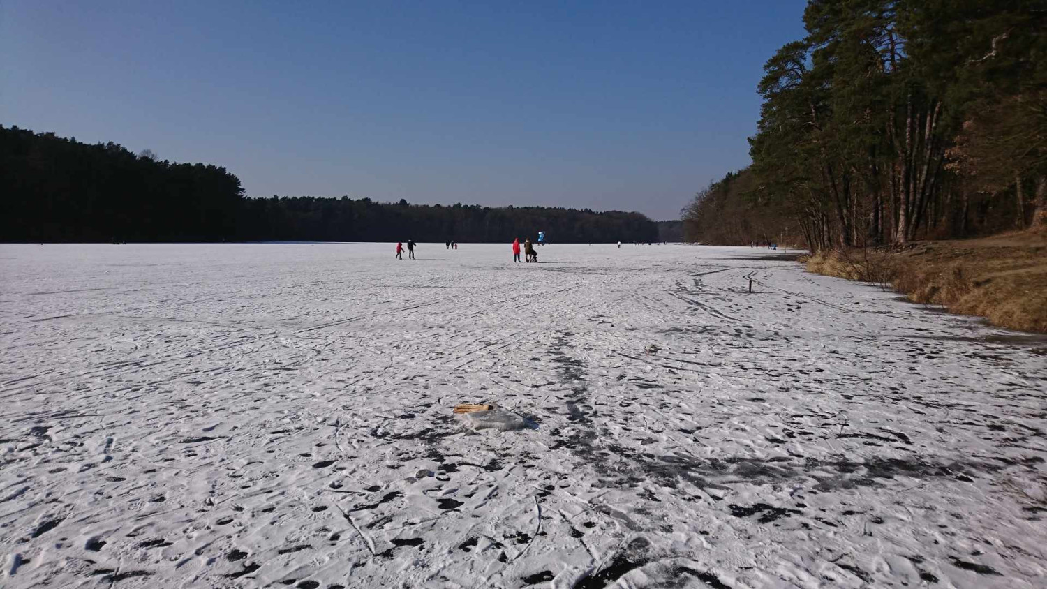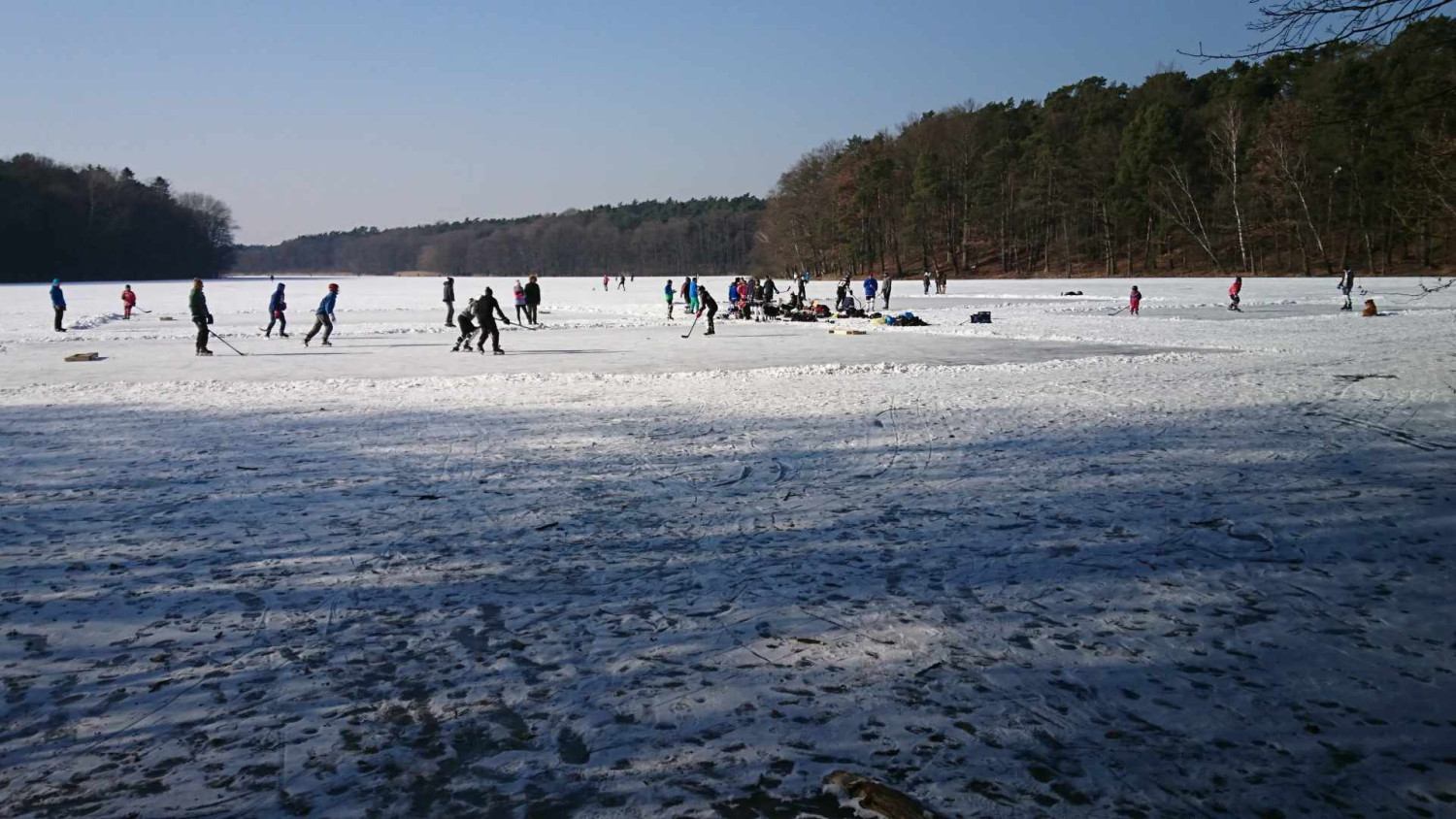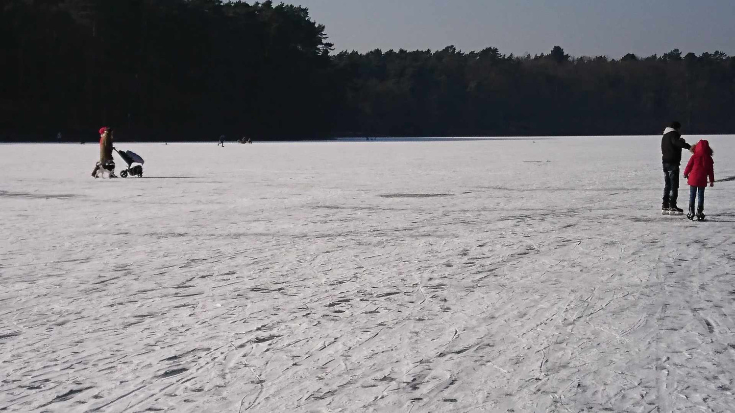 Na zdjęciach z 2018 roku widać ludzi jeżdżących na łyżwach oraz morsujących w rozkutych fragmentach tafli. Należy pamiętać, że wchodzenie na lód w każdych warunkach jest potencjalnym zagrożeniem i nawet bezpiecznie wyglądająca tafla może załamać się pod ciężarem ludzi, stąd apel, by nigdy tego nie robić.