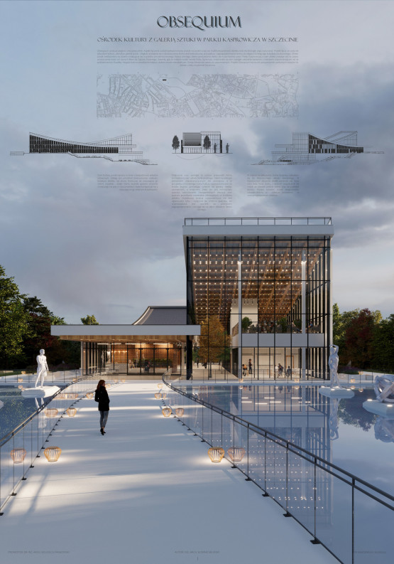 – „Obsequium” oznacza połączenie oraz uległość. Projekt łączy ze sobą dom kultury i galerię sztuki, a uległość przejawia się w dostosowaniu formy architektonicznej, jej kubatury i zagospodarowania terenu do niegdyś istniejącego krajobrazu kulturowego – wyjaśnia autor.