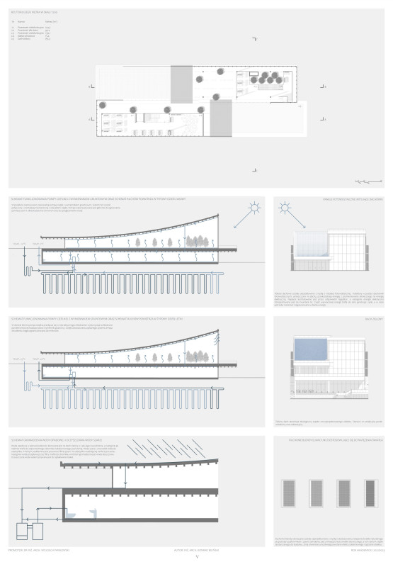 W obiekcie znalazły się sala wystawowa, galeria sztuki, szatnia, blok sanitarny, sala wielofunkcyjna, przestrzeń rekreacyjna, kawiarnia oraz audytorium. Bryła składa się z wielu przeszkleń oraz łączy drewno z technologią żelbetową. Jak podkreśla autor projektu, „z obiektu korzystałyby nie tylko instytucje, ale również prywatni użytkownicy”.