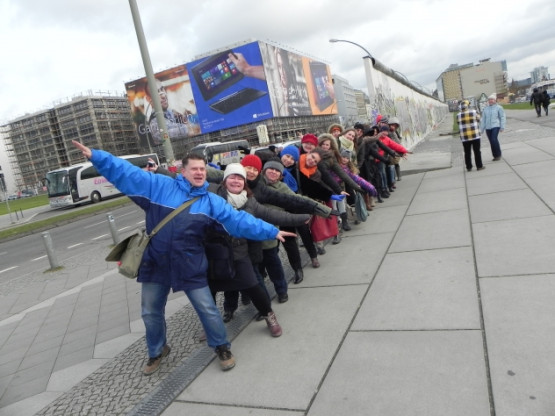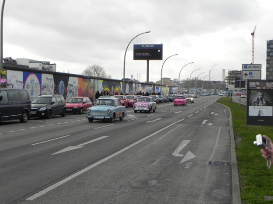 Dociera się nad Sprewę do najdłuższego pozostawionego fragmentu muru berlińskiego. Niegdyś bardzo skutecznie oddzielał on od siebie dwa świat - Kazik śpiewał o tym w wymownej piosence „Mój dom murem podzielony”. Dziś całe 1,3km muru stanowi przestrzeń wyrazu artystycznego pod nazwą East seid Gallery – największa na świecie prezentacja graffiti.